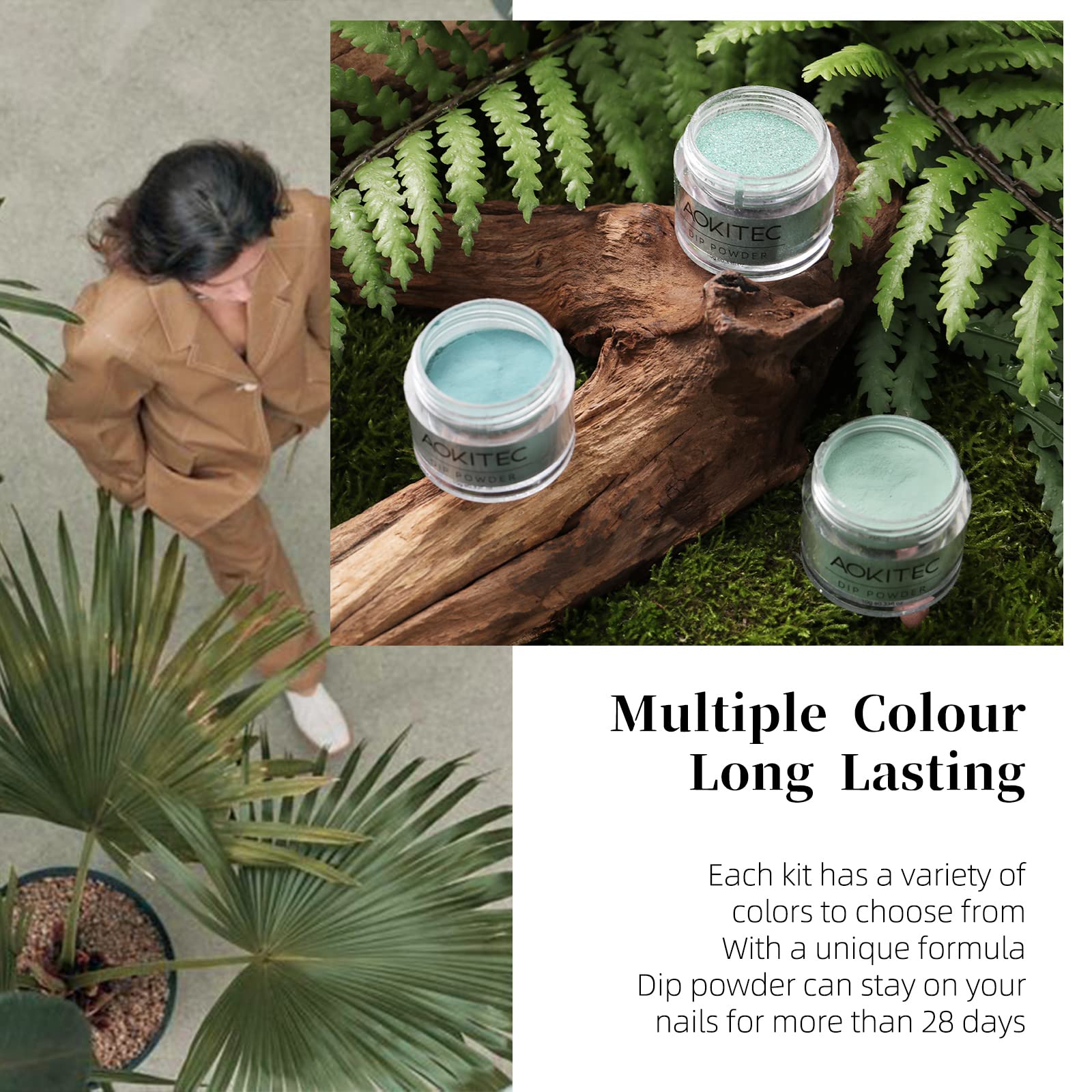 - đăEASY TO OPERATIONăAokitec Dip powder should be used with top, base coat and activator, Apply it in right way,it can last more than 3 weeks. Don't waste money on nail salon anymore.Doesnât need nail lamp to cure, which can avoid to damage your skin. It's a faster way to paint your nails.