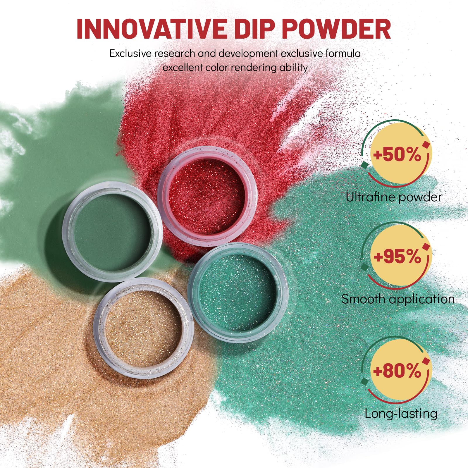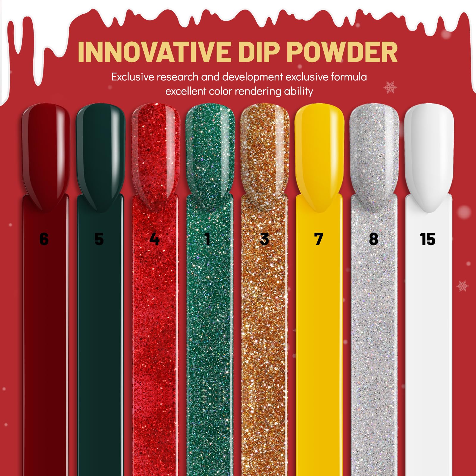 - šBrand-new Dip Powder Set - Aokitec 8 colors dip powder set offers a delightful range of holiday-themed colors and designs. You can find everything inside this set for an everyday OOTD vibe. Allowing you to create stunning festive nail art that complements your fashion style.