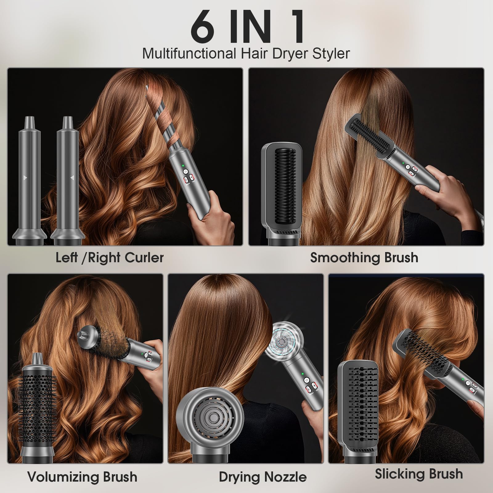 AOMEES Professional Hot Air Styler & Drying System, 6 in 1 Powerful Hair Dryer Brush • Styling Without Heat Damage, with Air Curler, Hair Dryer, Volumizer Brush, Hair Straightener Brush, Smooth Comb