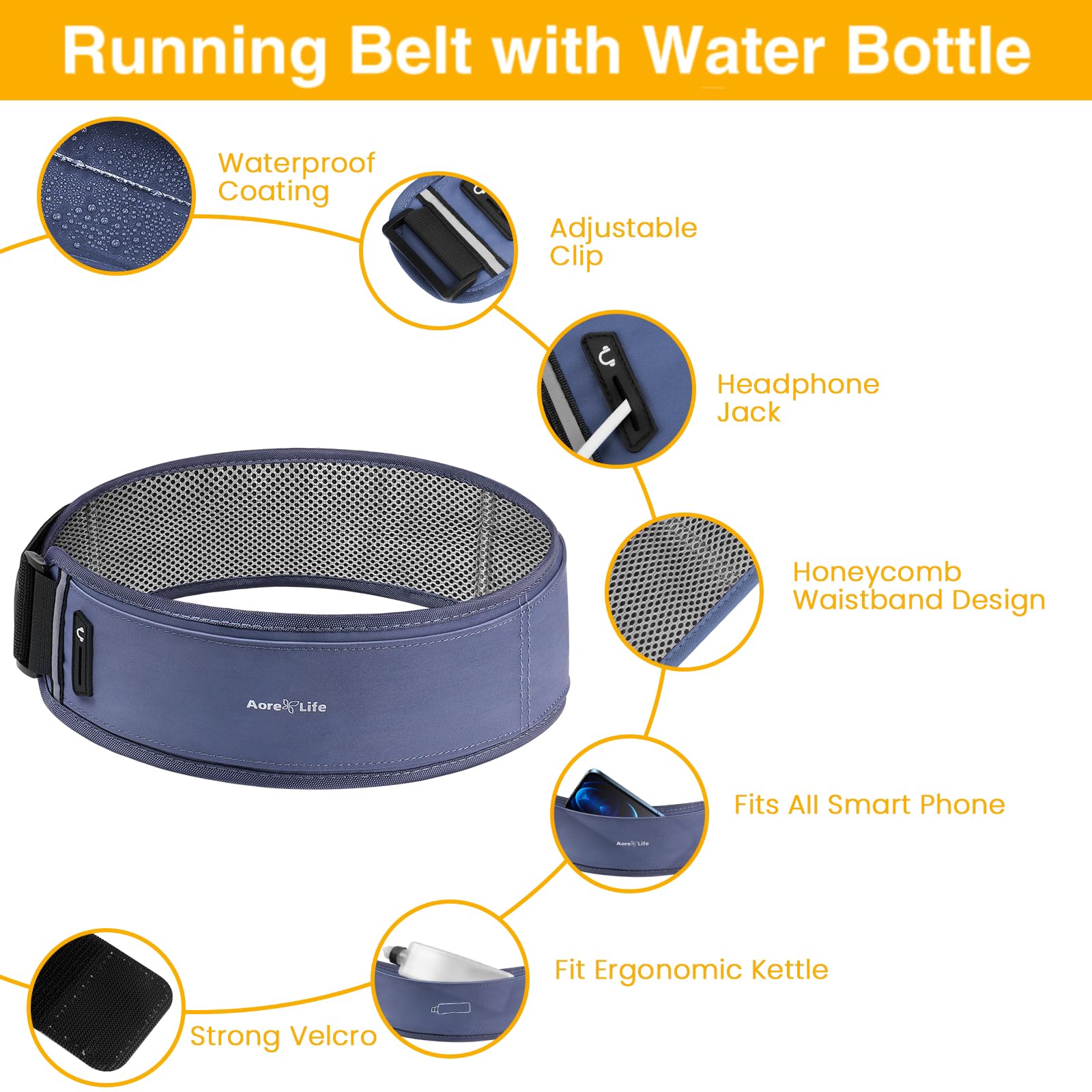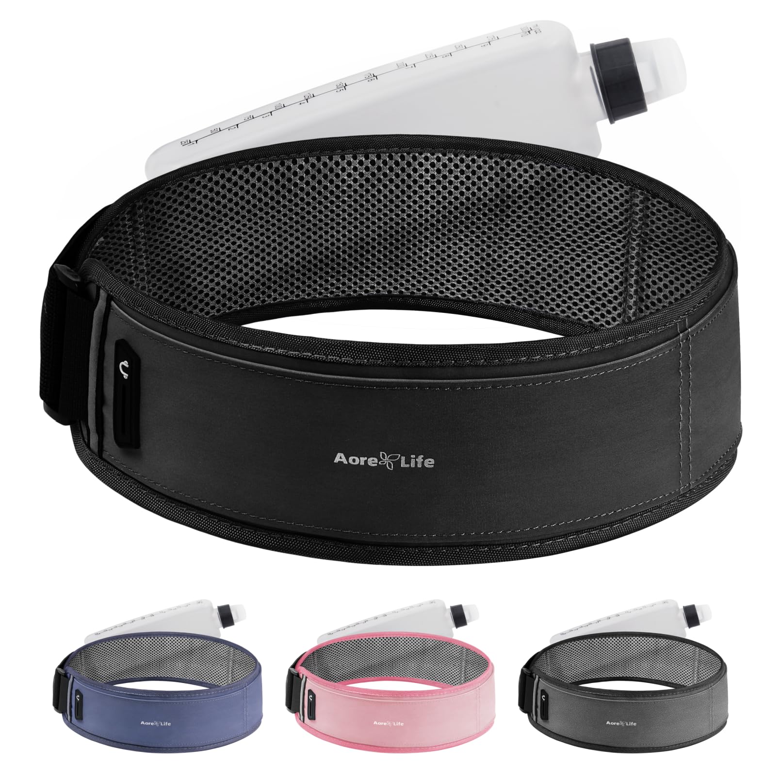 Aore Life Running Belt, Fanny Pack with Water Bottle Holder, Running Belt for Men Women, Hydration Belt, Running Gear, Phone Holder for Running