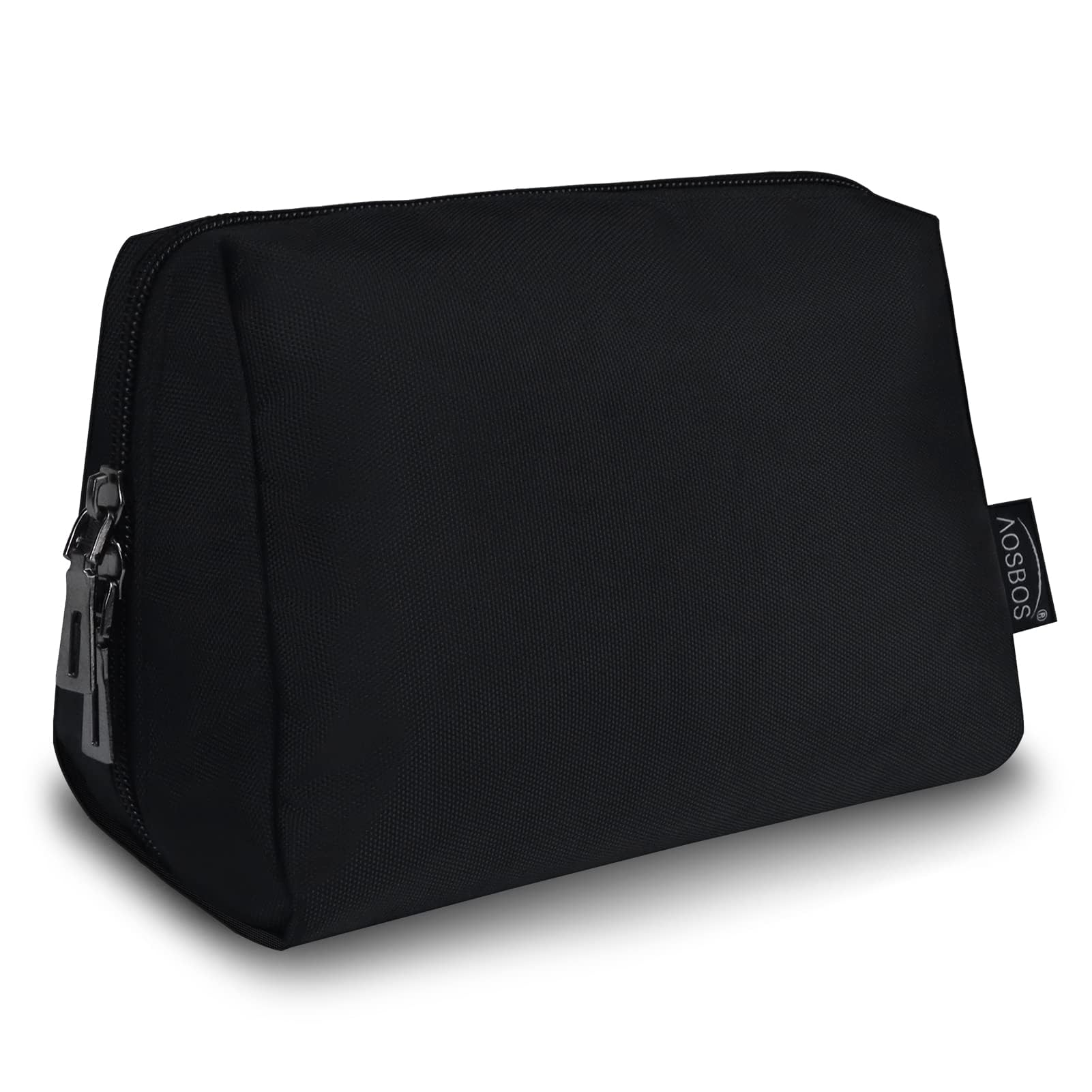 Aosbos Small Travel Makeup Pouch - Cosmetic Bag for Women, Midnight Black
