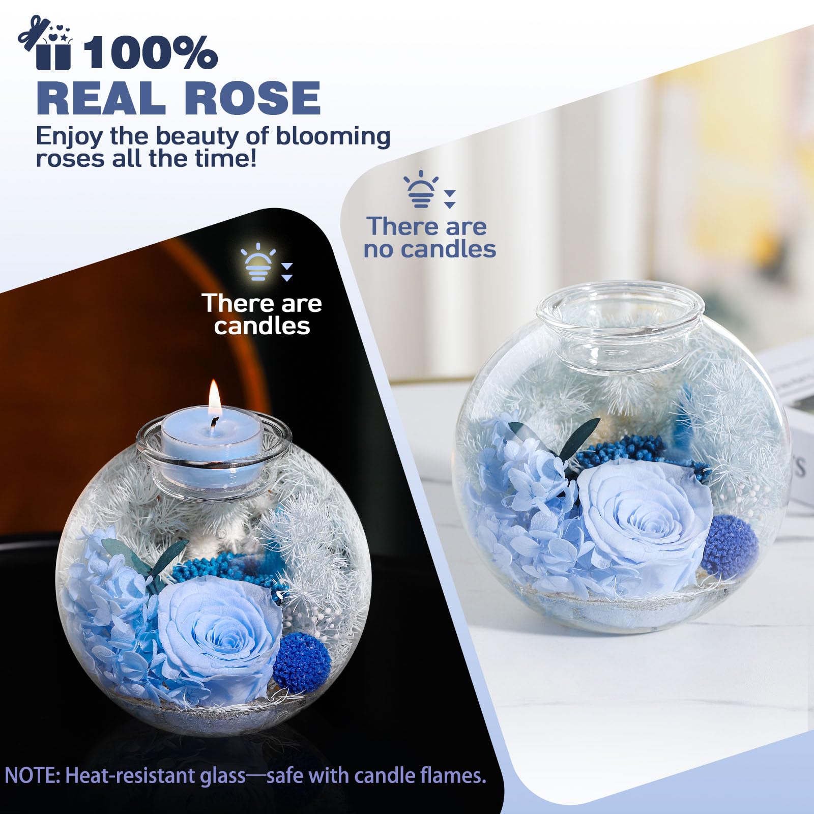 - 【Luxury Gift Set, Zero Maintenance】Arrives in a luxury gift box with candles, rose. No pollen, no fading—just everlasting elegance. Ideal for home decor, proposals, or “just because” moments to show you care.