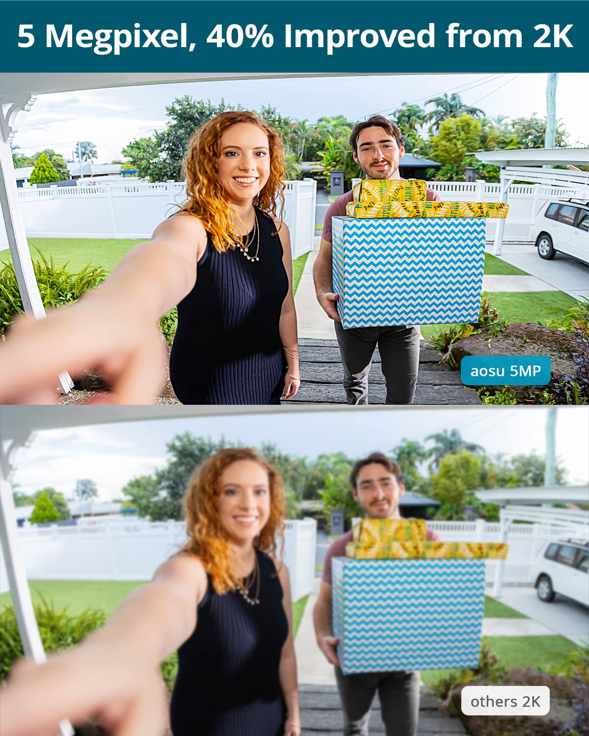 - 5MP UHD, 40% Improved From 2k: Adopted 7 pieces of an advanced ultra-clear optical glass lens ensures you get sharp, detailed images even in low-light or bright conditions.