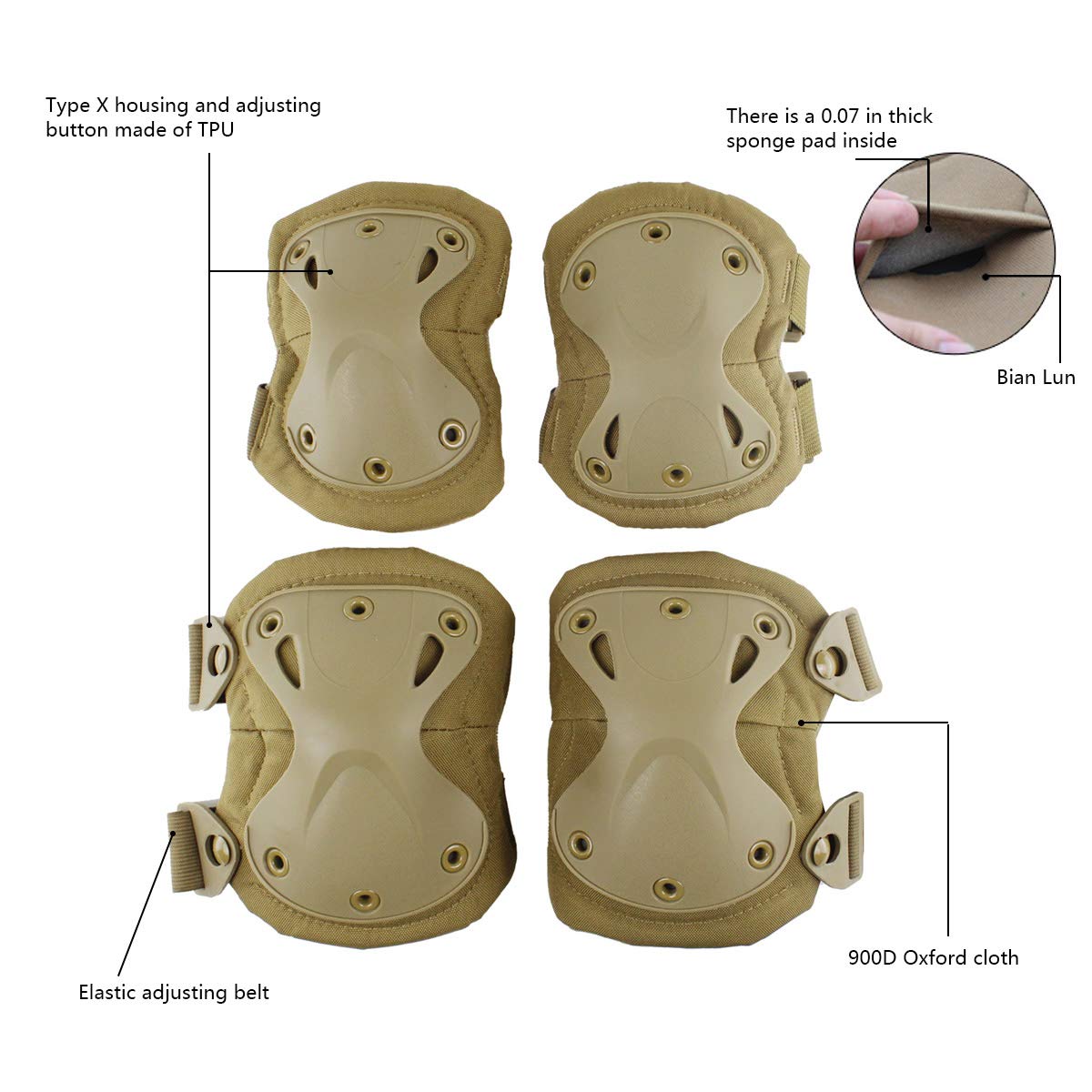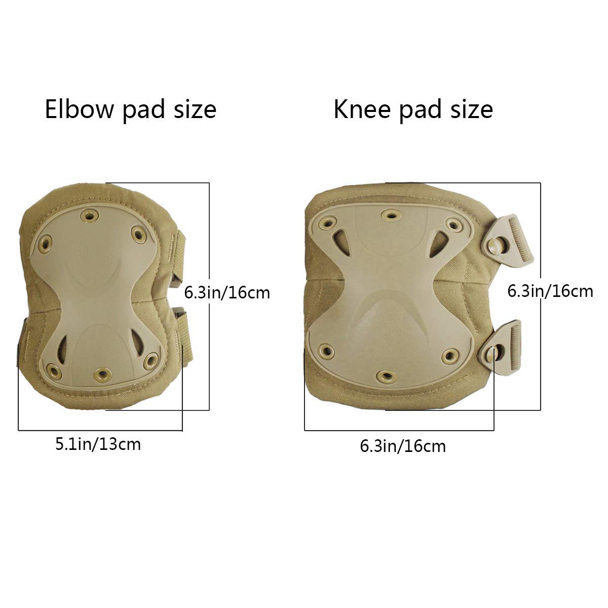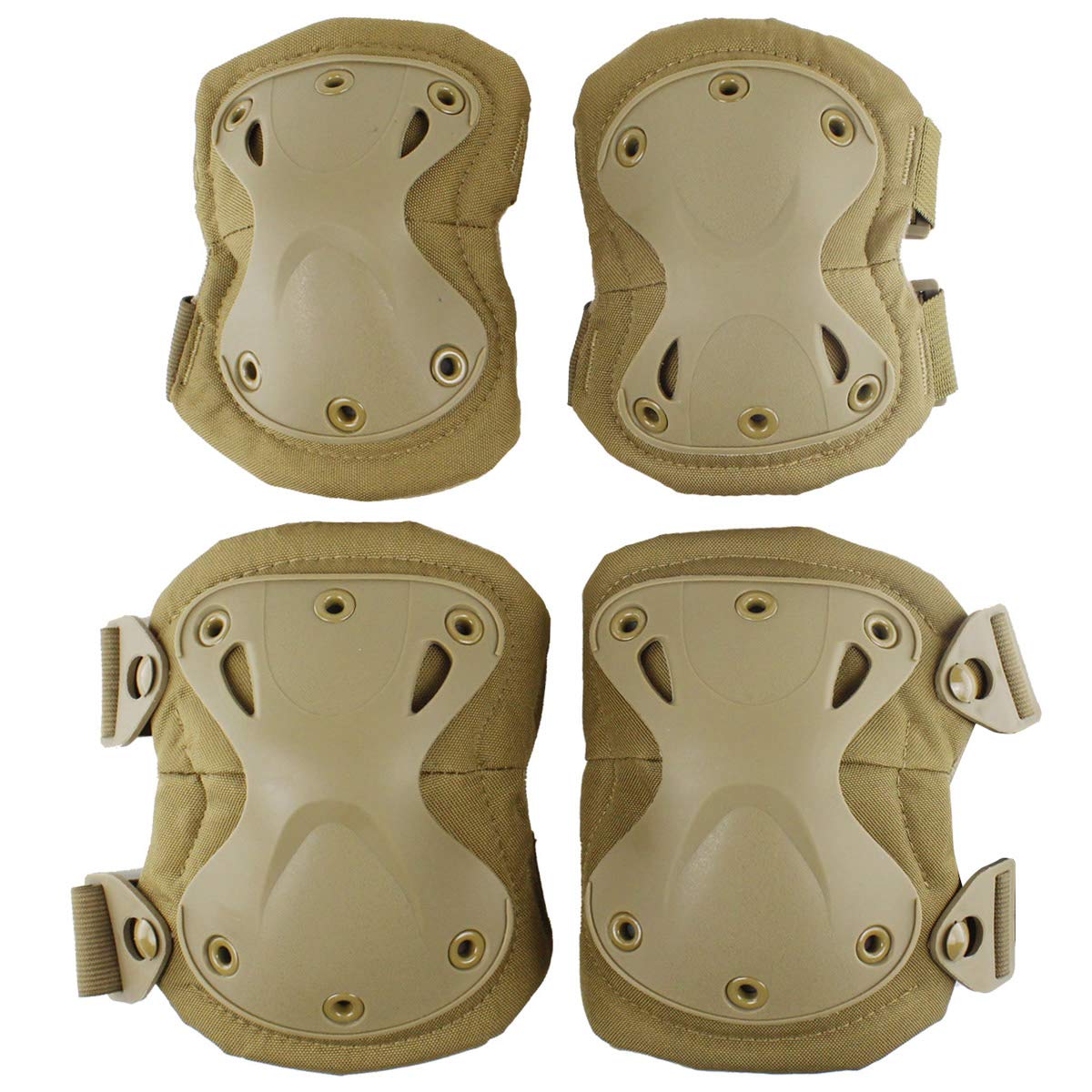 AOUTACC Tactical Combat Knee & Elbow Protective Pads Set for Outdoor CS Paintball Game Cycling Safety Skateboarding Gear Skates Knee Protection Guard Pads (Tan)