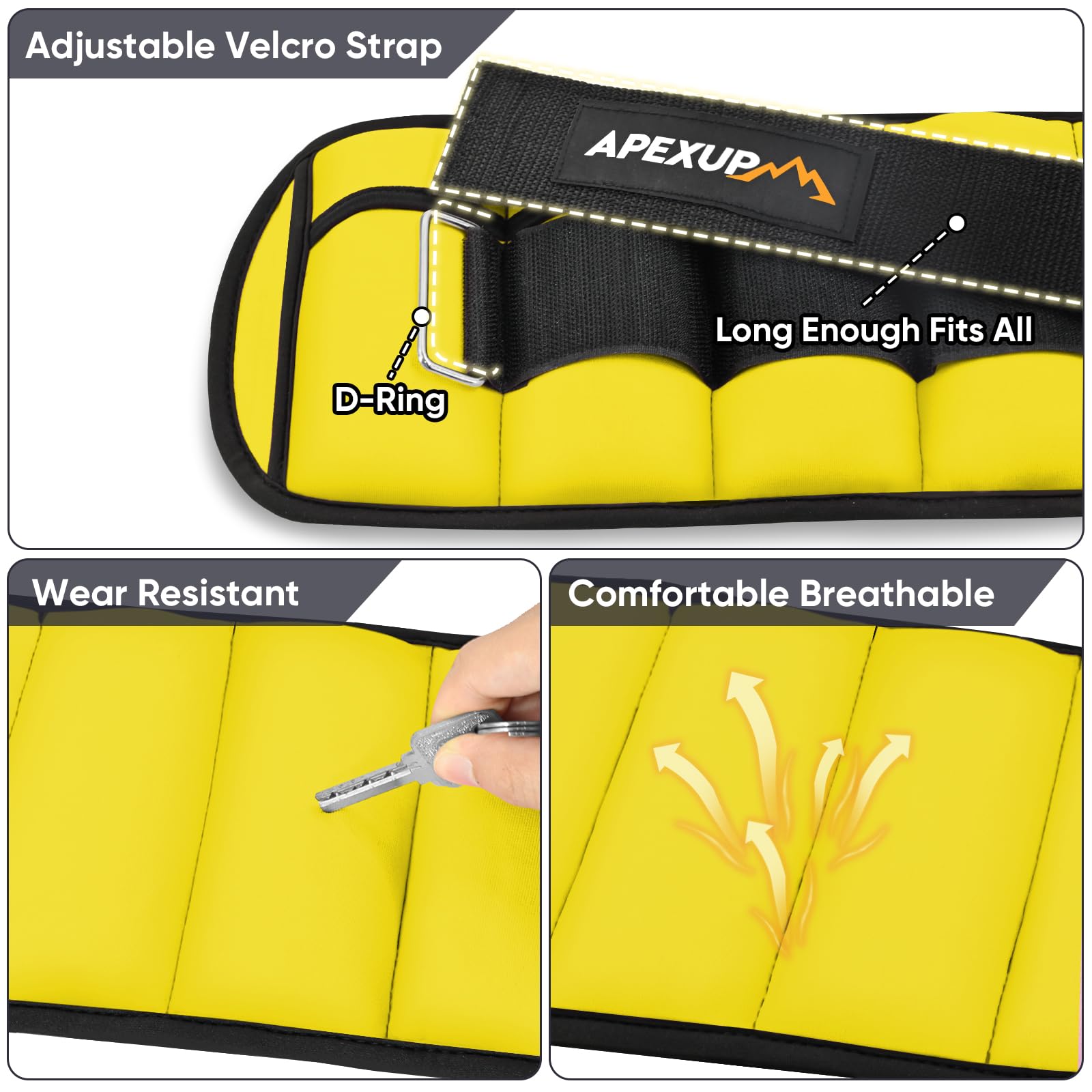 APEXUP 10lbs/Pair Adjustable Ankle Weights for Women and Men, Modularized Leg Weight Straps for Yoga, Walking, Running, Aerobics, Gym (Yellow)