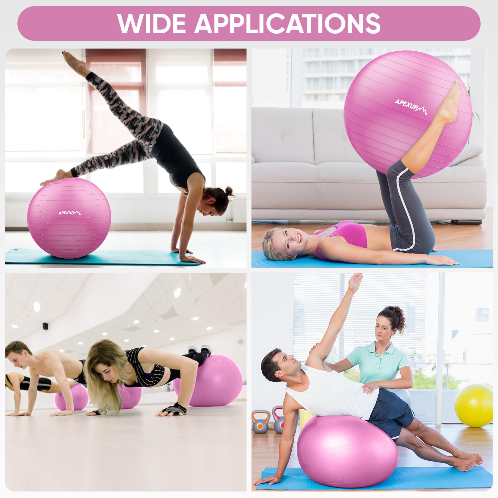 APEXUP Yoga Ball Exercise Ball, Anti Slip Stability Ball Chair, Heavy Duty Large Gym Ball for Fitness, Balance, Core Workout and Physical Therapy (S (15"~18") 45cm, Fuschia)