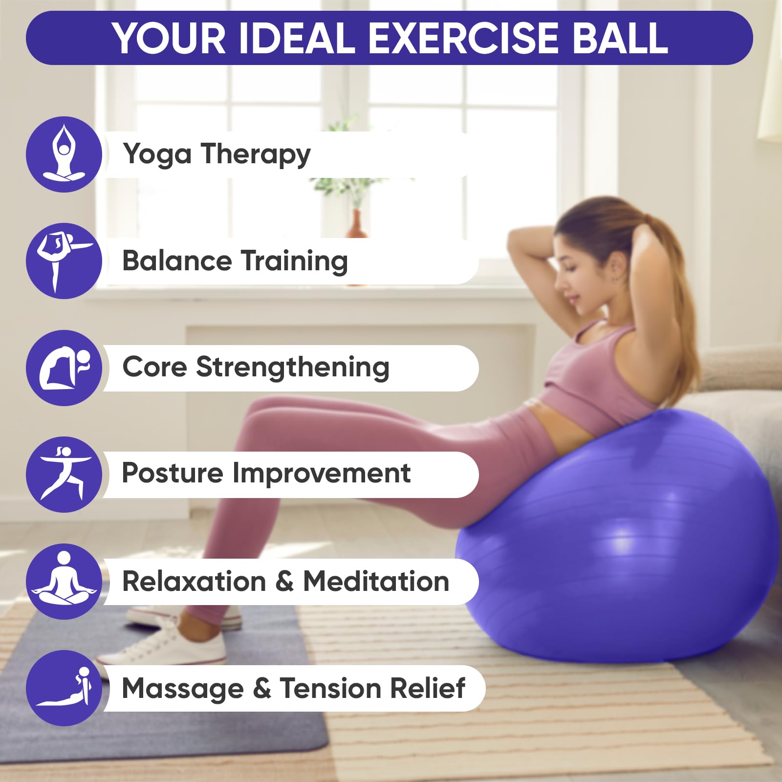 - [VERSATILE UTILITY] This multi-functional bounce yoga ball can be used for various activities, such as postpartum exercise, balance training, core workouts, massage therapy, posture improvement, relaxation, and meditation. It can also serve as a physical therapy ball, fitness core workout ball, or physio ball, which provides a gentle workout that relieves tension and promotes health.