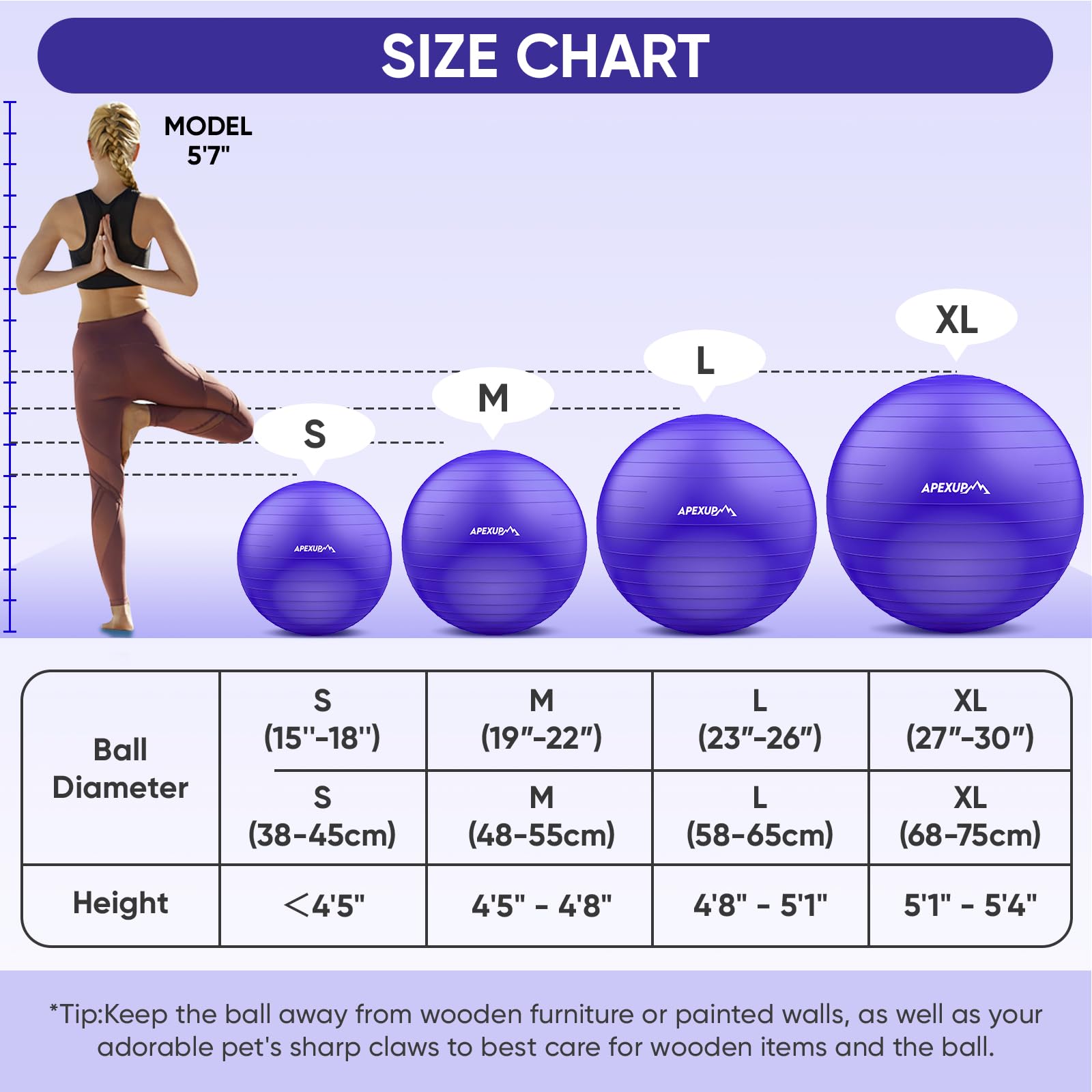 APEXUP Yoga Ball Exercise Ball, Anti Slip Stability Ball Chair, Heavy Duty Large Gym Ball for Fitness, Balance, Core Workout and Physical Therapy (S (15"~18") 45cm, Indigo)