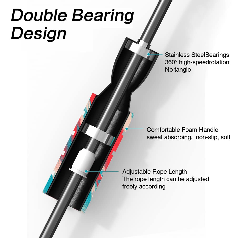 - 【Maximum Comfort】:The handle of the speed jumping rope is covered with soft cushioned memory foam, the grips quite comfortable even for long-time holding. The inner foam is damp-resistant, odor-resistant and sweat-absorbent, so that you have a better sports experience.