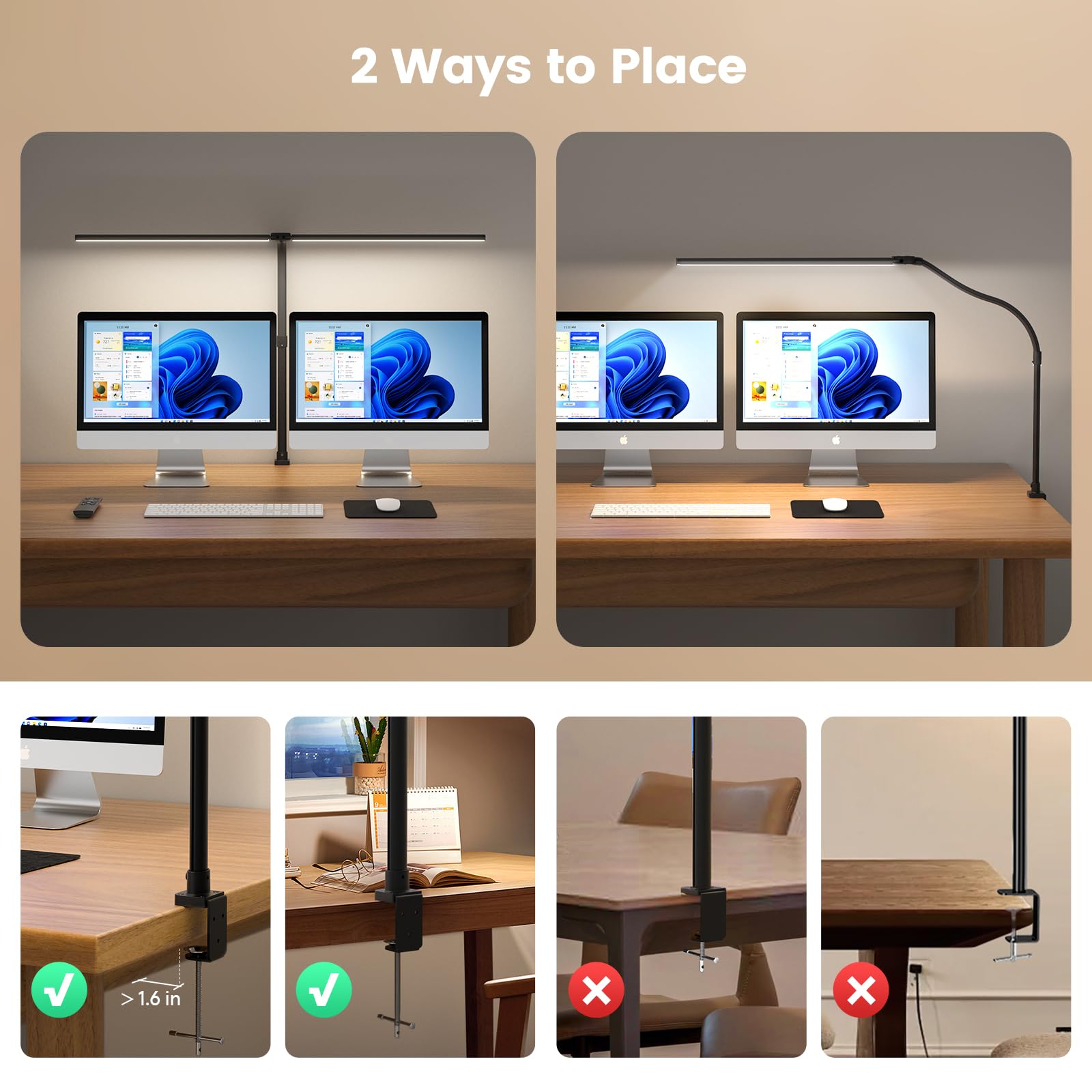 - Clamp-on & Easy to Install: Our computer desk lamp, easy to setup (just 3 steps,) large metal clamp, working height 2.2 inch (5cm), fits well on desks, space saving and portable, practical for sewing/studying/painting/crafting/doing nails.