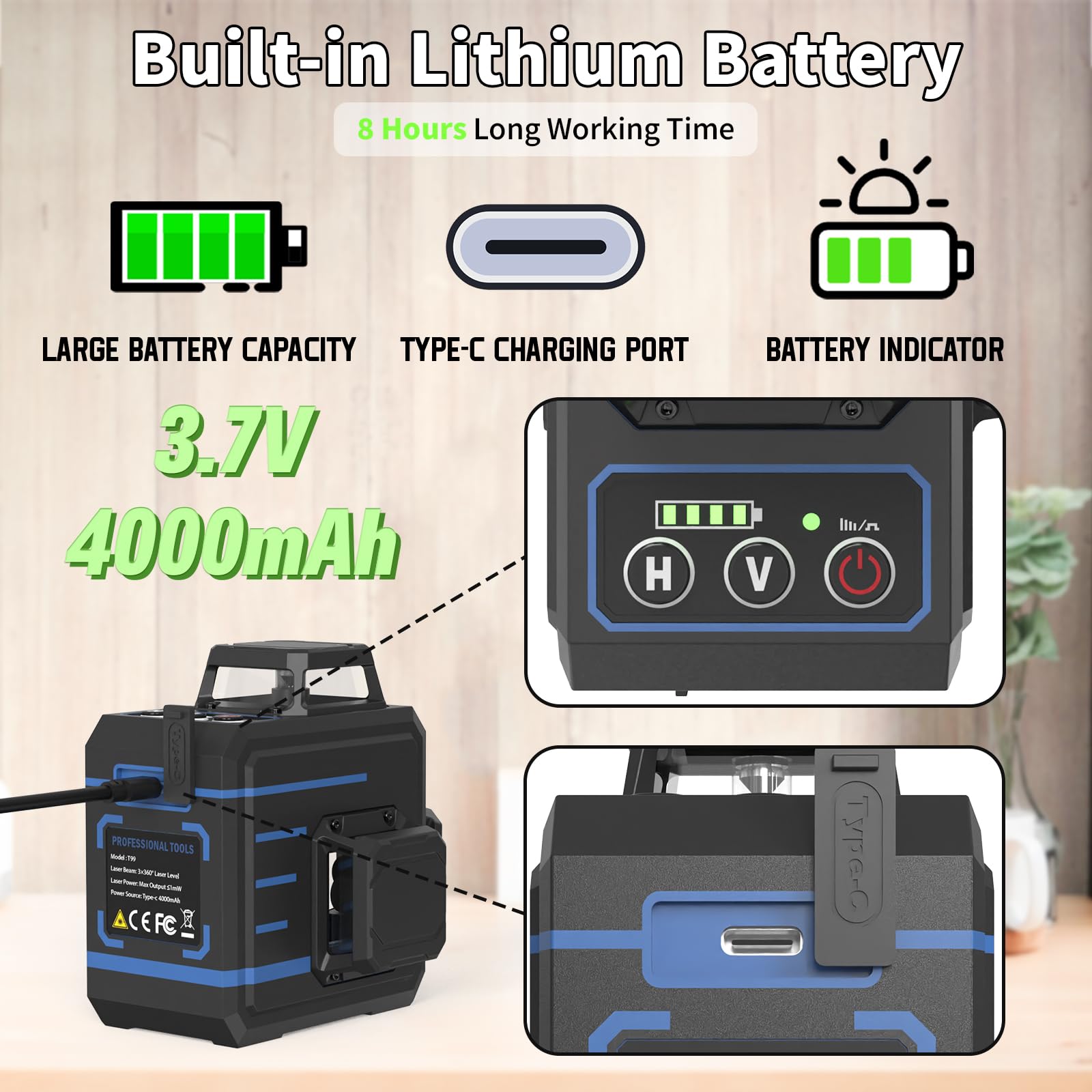 - High Visibility & High Accuracy: APOWER 100Ft laser level utilizes advanced green laser diode technology, making the green laser brighter, more precise, and longer-lasting than traditional red lasers. It ensures superior visibility and reliability even in cloudy weather. As a Class II laser product, it has a maximum laser output of <1mW, ensuring safety and compliance