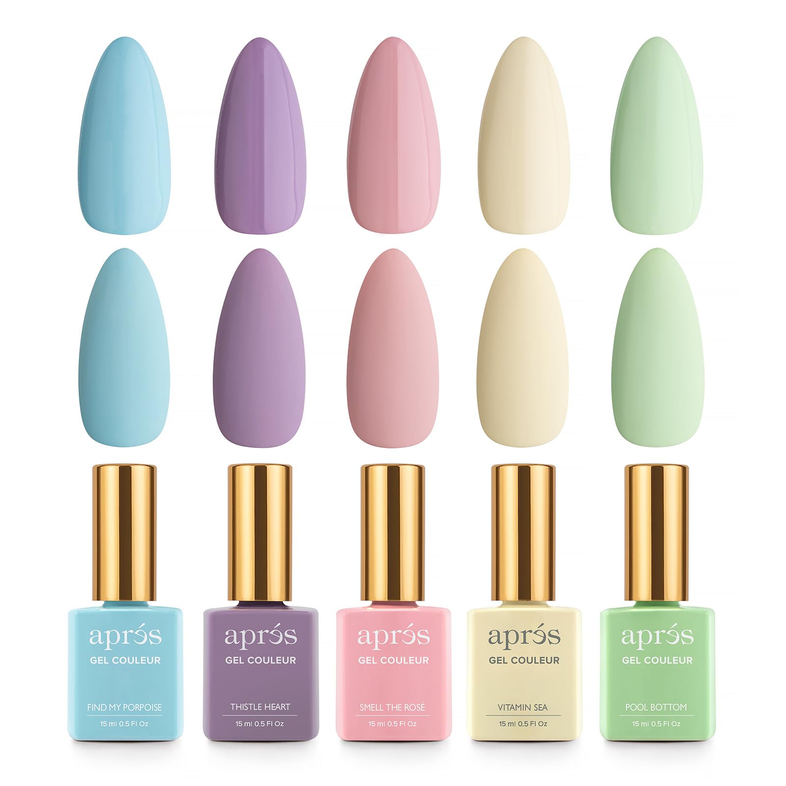 Apres Gel Couleur Combo Set, 5 Color Gel Nail Polish, Bright Nude Pastel Colors with Brush-X Nail Art Brush, 2024 Edition (Set 4)