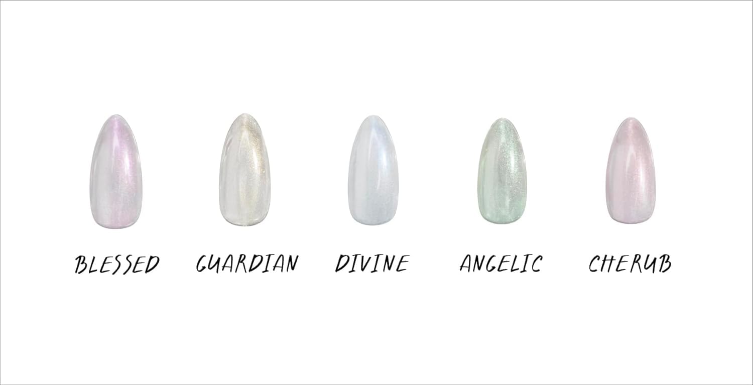 - Five Dreamy Shades: Available in five stunning shades—Blessed (Purple), Guardian (Gold), Divine (Blue), Cherub (Pink/Red), and Angelic (Green)—each offering a unique, heavenly shimmer for a radiant finish.
