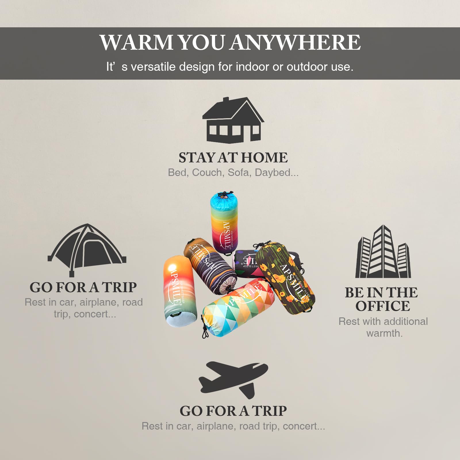 - Unique Versatile Design -- Our packable throw blanket is sewn with unique buttons snaps, loops, and cape clasps, allowing you to transform it into various shapes, such as a wearable blanket, a sleeping bag, or a travel pillow alternative, or an attached hanging mattress, or join another to make it bigger for snuggling with your loved one. Keep it, enjoy the warmth and explore more