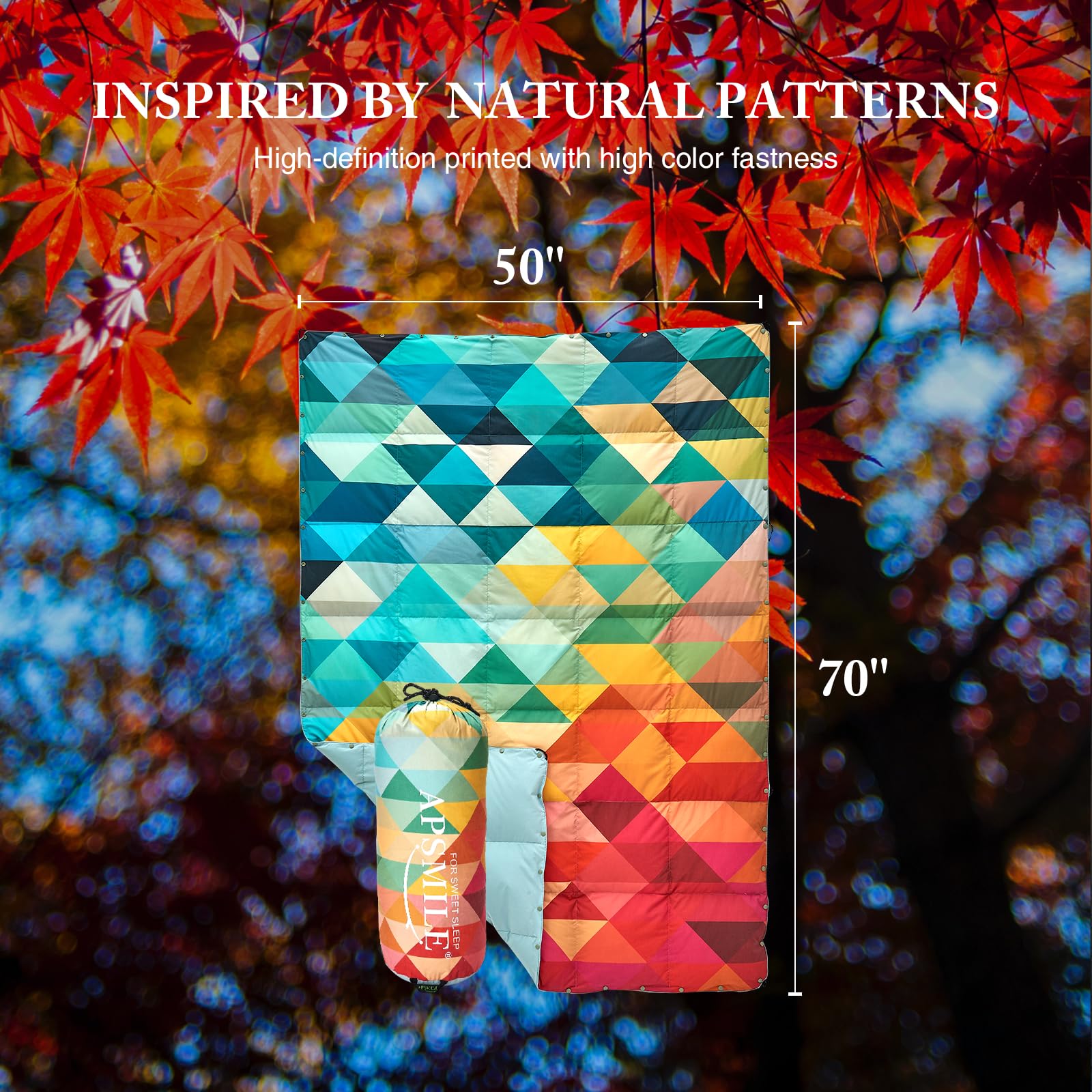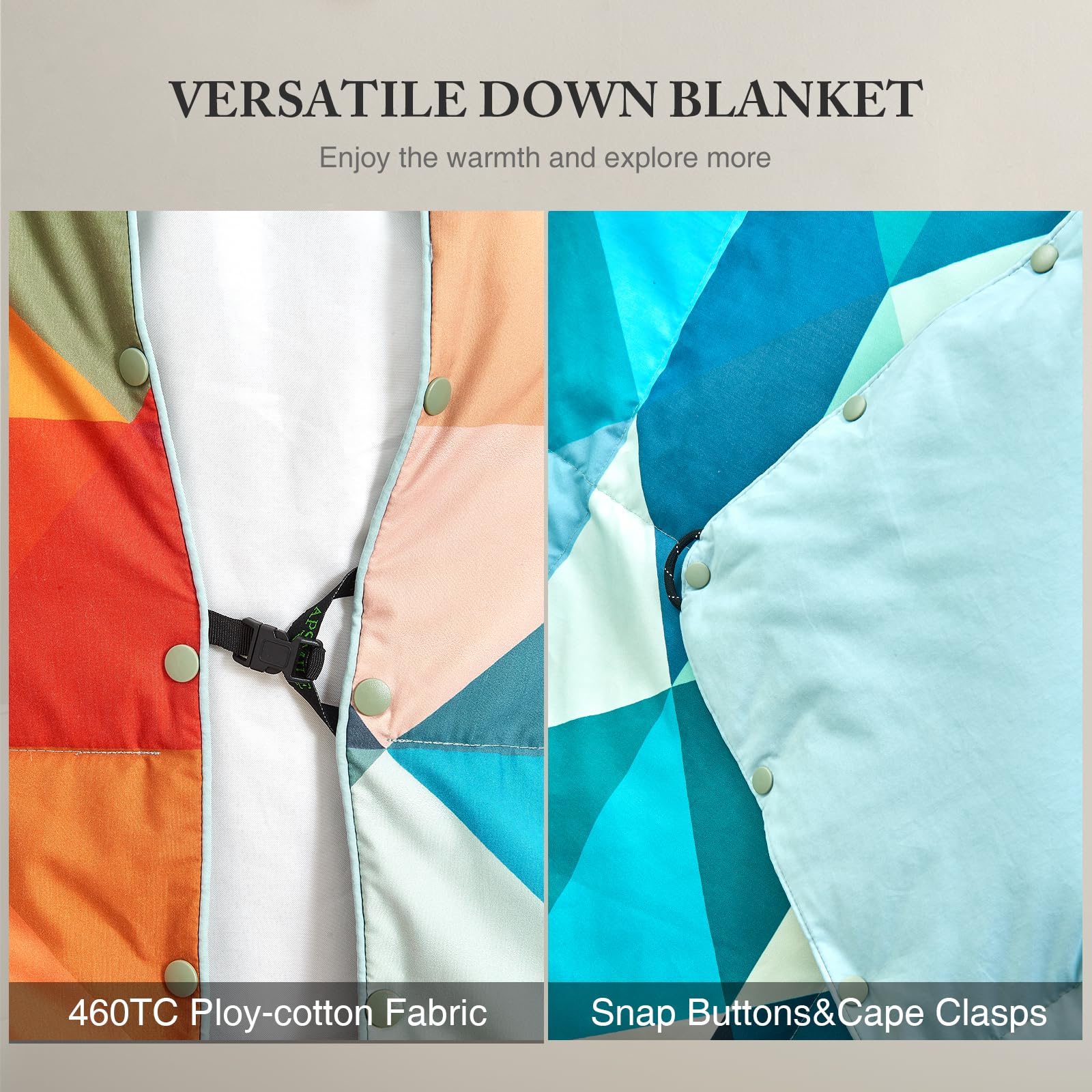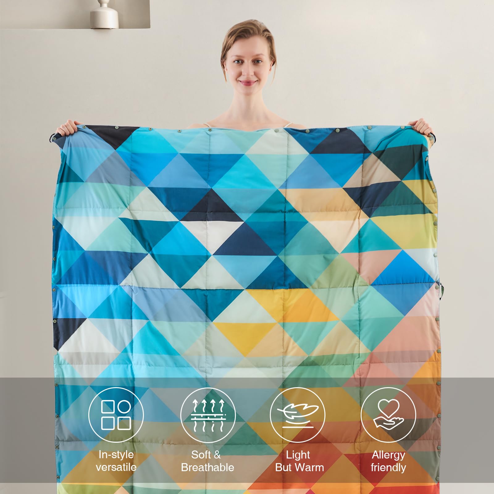 APSMILE Mosaic Print Down Throw Blanket | Indoor/Outdoor Extra Fluffy & Warm Packable Down Feather Fibers Blanket with Snap Buttons for Bed, Couch, Sofa, Travel, Camping, 50x70 Inches