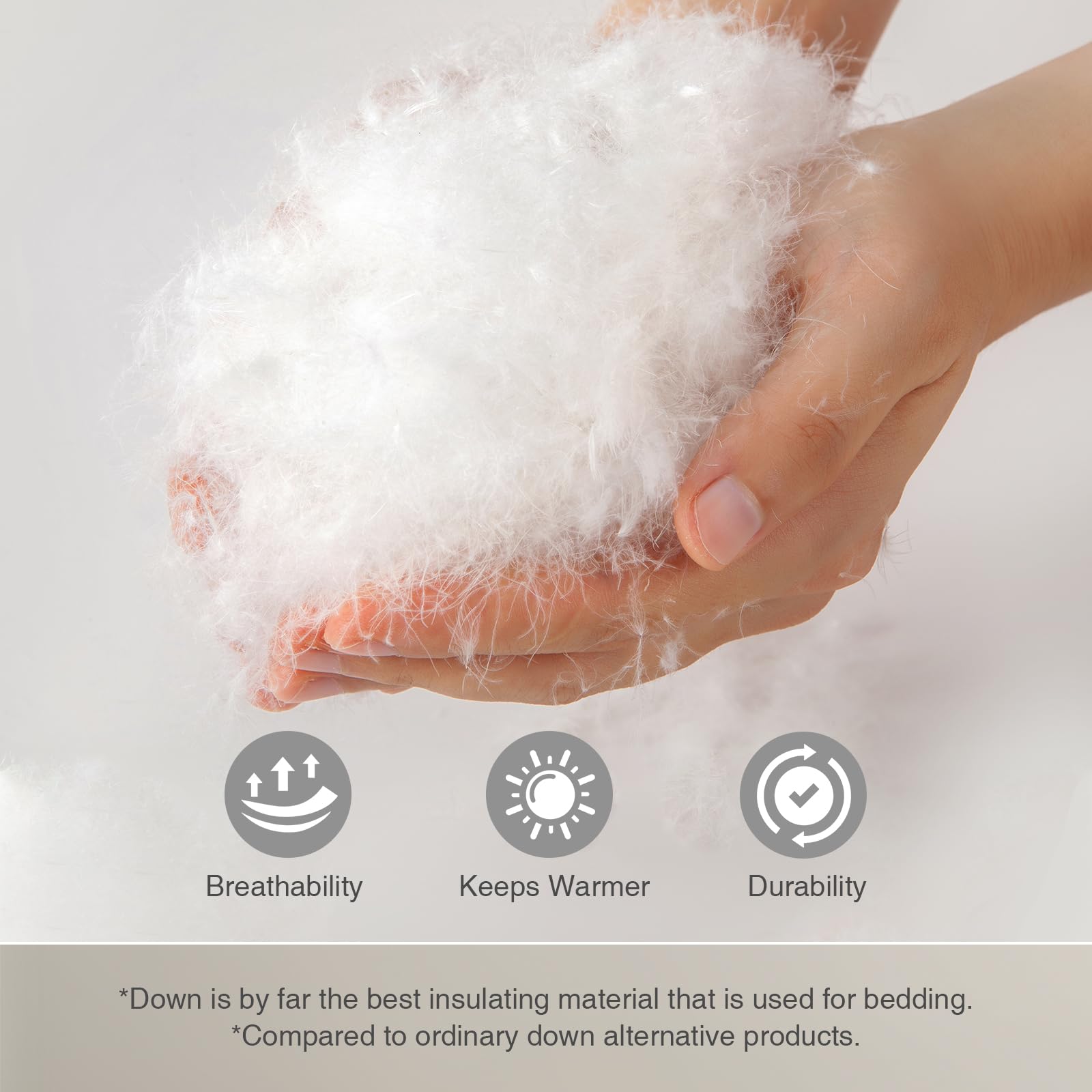 - Premium Quality and Family-Friendly -- Down is nature's finest insulator, providing the most warmth with weightless. We use responsibly sourced feathers and down ensuring a lightweight, breathable, odor-free and warm blanket. It's approved by OEKO and RDS. Enjoy the highest quality without compromise