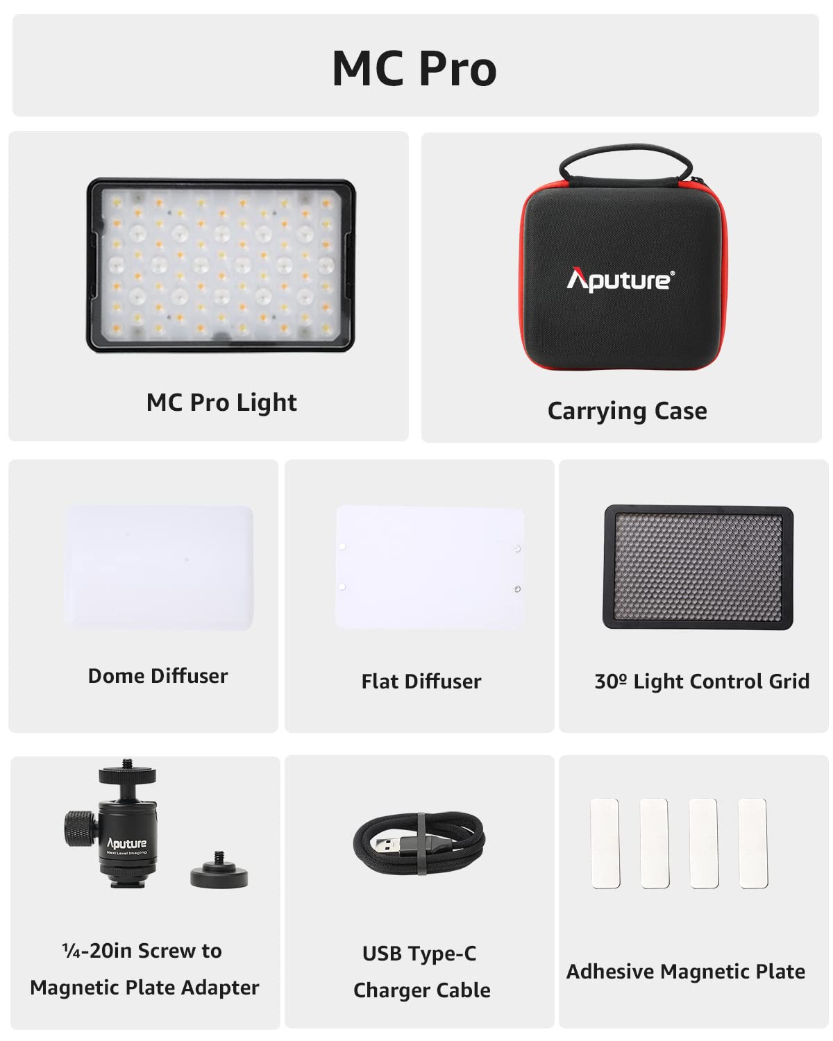 Aputure MC Pro Camera Lights,RGBWW LED Video Lights Lensed Mini LED Panel Full Color Portable Photography Lighting,4200mAh Rechargeable Battery,APP Control, Support Magnetic Attraction
