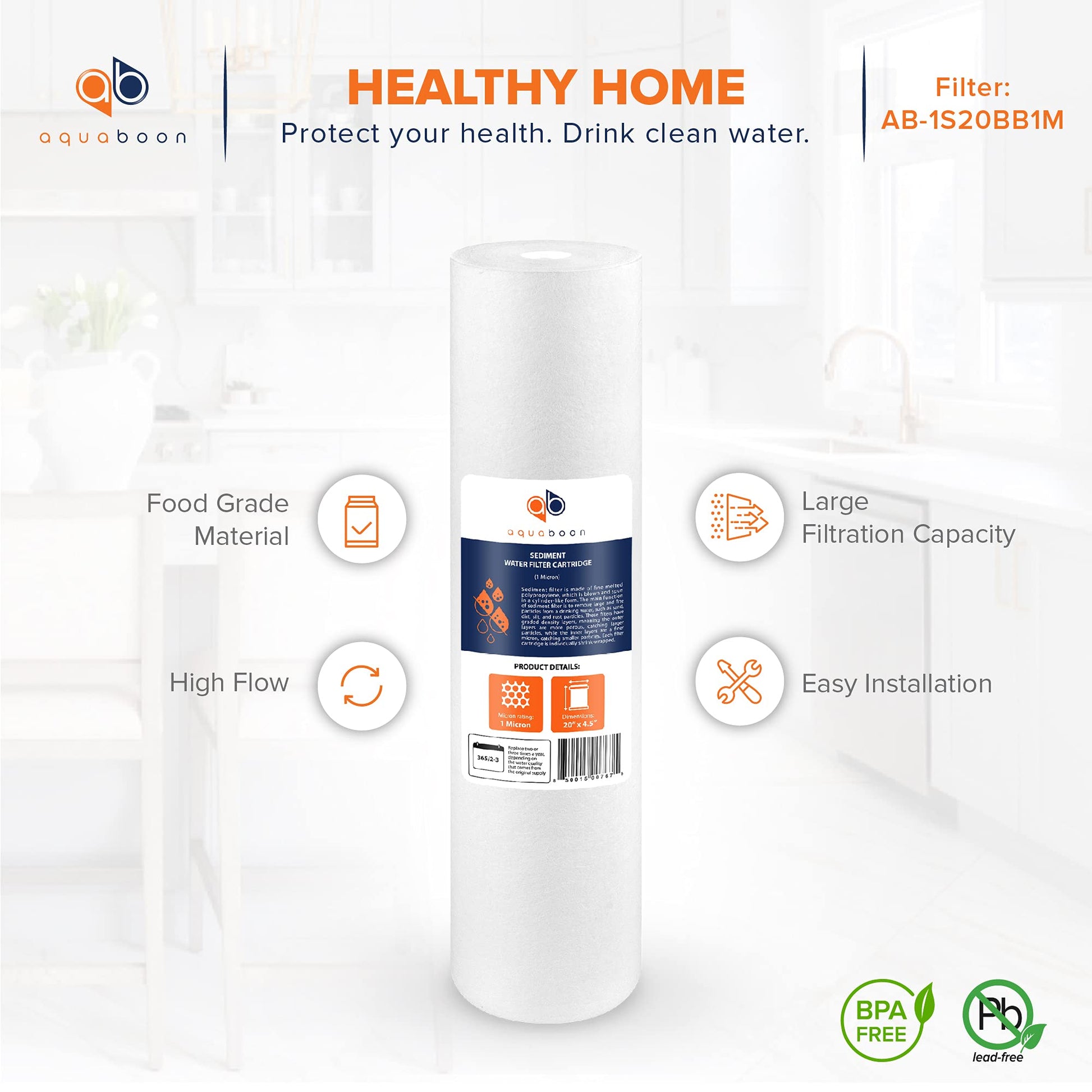 Aquaboon 1 Micron 20" Sediment Water Filter Replacement Cartridge | Whole House Sediment Filtration | Compatible with AP810-2, SDC-45-2005, FPMB5-20, P5-20, FP25B, 155358-43, 6 Pack