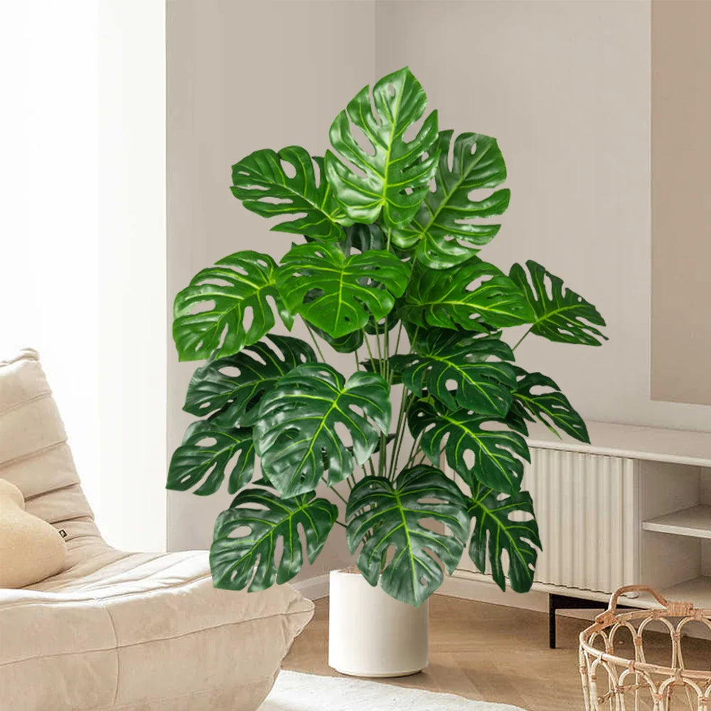 This artificial Monstera Tree adds a touch of tropical flair to any space. Handcrafted with stunning details and realistic textures, this tree is the perfect low-maintenance décor option. Made with durable materials, it will provide long-lasting beauty and elegance to your home or office.