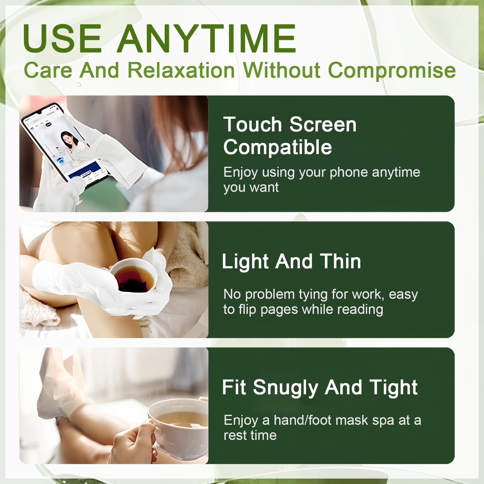 The hand repair gloves and foot mask for men are intensely moisturizing, easy to wear and feel comfortable. You can enjoy a foot and hand spa at home or in the office, and use the hand softening gloves and foot mask moisturizing without hindering activities such as working, playing cell phones, games, housework, and so on.