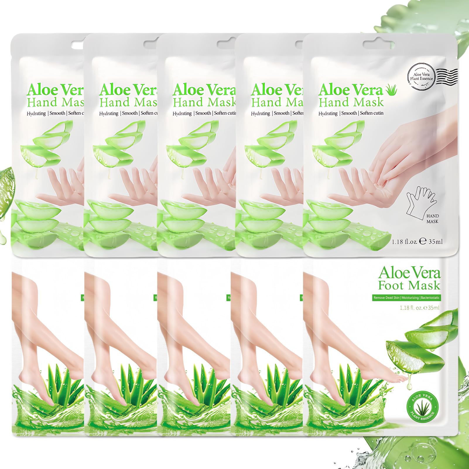- 【10 Pcs Aloe Vera Hand and Foot Masks】 Aloe vera hydrating foot and hand mask set contains 5 packs of hydrating foot mask and 5 packs of hand peeling mask, which contain natural ingredients and plant extracts and can be used by both men and women.