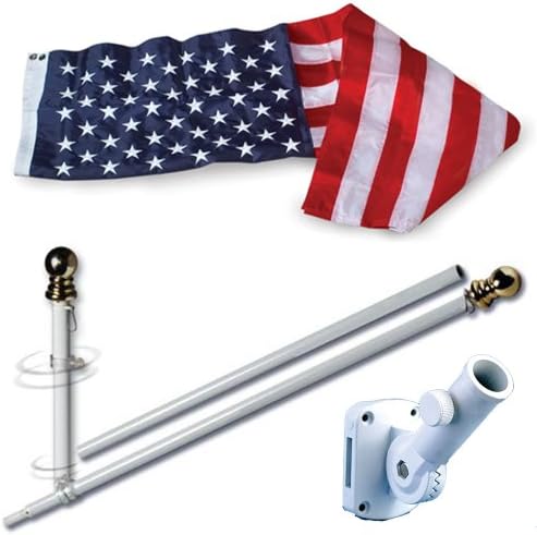 American Flag and Pole Set - 3x5 US Flag and 5' Spinning Flag Pole, Durable for Outdoors - Made in USA