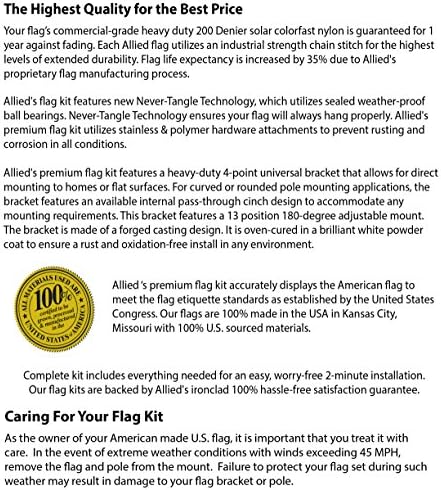 - Tangle-free spinning flagpole - our flag kit includes a 5' spinning flag pole for the perfect outdoor flag display. Our new tangle-free technology Utilizes sealed weather-proof ball bearings to ensure your flag hangs properly