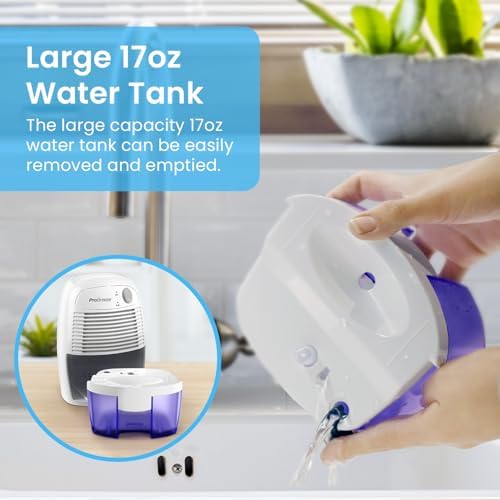 Pro Breeze Electric Mini Dehumidifier for Home (215 sq.ft) 16oz Capacity, Energy Efficient, No Noise, Compact and Portable for High Humidity in Kitchen, Bedroom, Bathroom, Basement, RV, Office, Garage