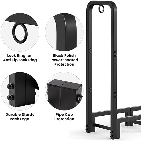 - Unique and Convenient Design: The 8 feet firewood holder features 2 lock rings and 14 solid rack legs, that means we take more care of the security for your families. Secure the 8ft firewood rack outdoor reliably and effectively against tipping over of the heavy firewoods, which could otherwise result in serious injuries and even fatalities in the case of babies, children. Just lock up the rack with extra straps and put the rack on a hard surface