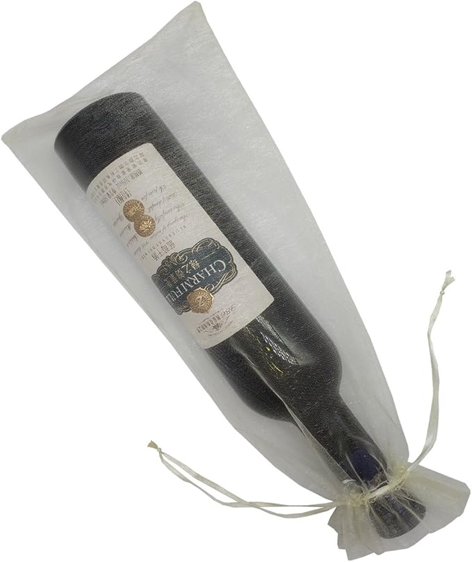 Ankirol 20pcs Sheer Organza Wine Bags 5.5x14.5 inch Baby Shower Wedding Favors Drawstring Pouches (Cream)