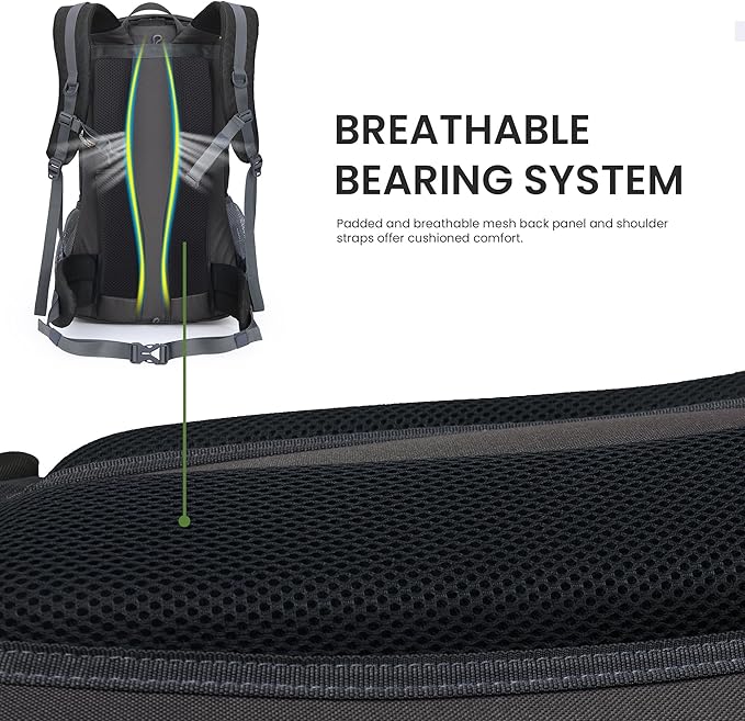 - Comfortable and Breathable: This travel backpack uses breathable mesh padding and a ventilated back system to keep your items dry and ventilate your back. The ergonomically designed structure helps to evenly distribute the weight, making it comfortable to carry while hiking.