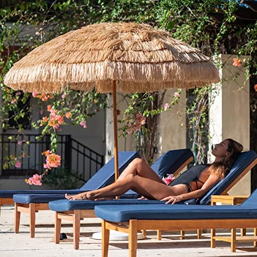 AMMSUN 7.5ft Hula Thatched Tiki Patio Beach Umbrella Hawaiian Style 10 Ribs UPF 50+ with Tilt Carry Bag for Outdoor Tiki Bar, Tropical Palapa, Patio Garden Beach Pool Backyard Natural Color