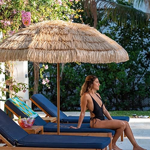 - SPF50+ UV Protection - 7.5ft Hawaiian Hula tiki Umbrella is made from environmentally artificial thatch nylon+PP cover materials .UPF 50+ UV protection filters out 99% of harmful UV radiation rays.EASY TO ADJUST: Open, close and tilt the umbrella with ease.