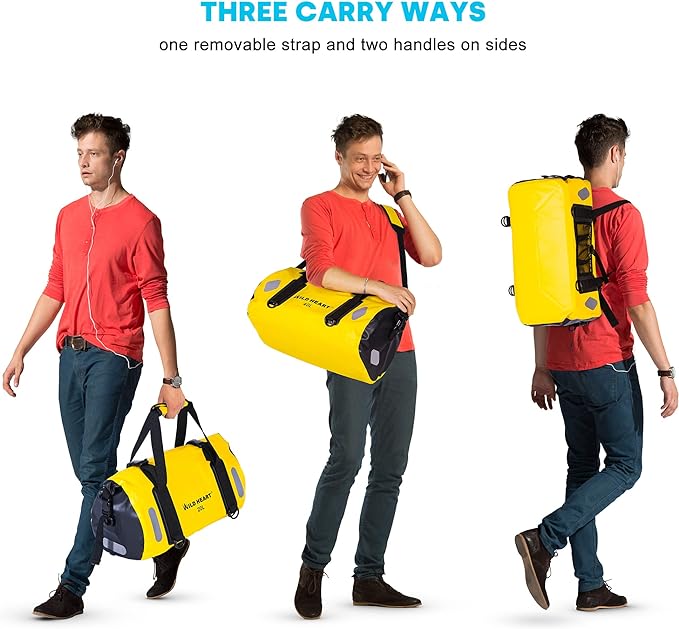 WILD HEART Waterproof Bag Duffel Bag 20L 30L 40L with Welded Seams Shoulder Straps, Mesh Pocket for Kayaking, Camping, Boating,Bicycle,Motorcycle