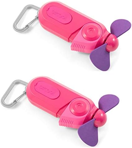 O2COOL Personal Mini Misting Fan - Portable Battery Operated Handheld Cooling Accessory with Fine Mist Spray for Outdoor, Beach, Camping - Convenient Carabiner Clip for Easy Travel - Raspberry 2 Pack