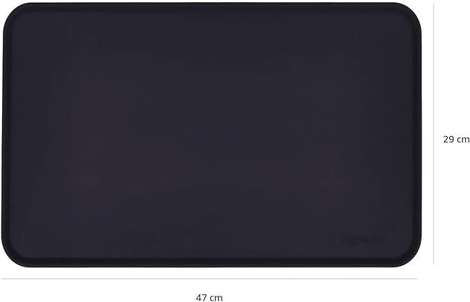 Amazon Basics Waterproof Anti-Slip Silicone Cat & Dog Food Mat, Pet Mats with Raised Edges for Food and Water Bowl to Protect Floors, 18.5 x 11.5 Inches, Black, Solid