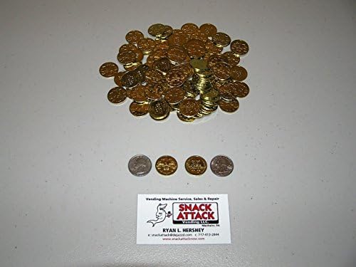 (100) Amusement Arcade Vending Machine 0.900" Tokens or Coins (Smaller Than Quarter) - New Brass Plated