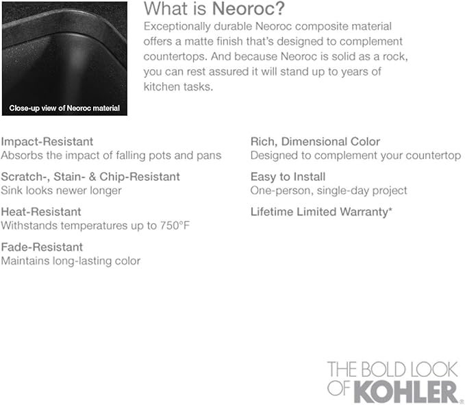 - Neoroc is scratch, stain, chip, and thermal-shock resistant
