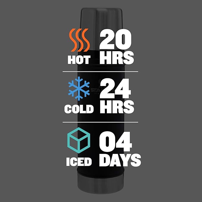 - KEEP IT HOT OR COLD: Our Stanley Classic Vacuum Bottle is made with superior insulation that keeps liquids (soup, coffee, tea) hot or cold drinks cool for up to 24 hours. It’s also made with BPA-free materials, keeping its contents safe to consume.
