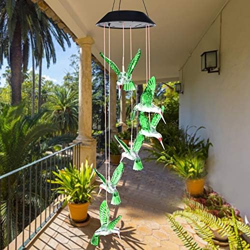 SIX FOXES Wind Chime, Solar Hummingbird Wind Chimes Outdoor/Indoor,Birthday Gifts for Mom Grandma,Mother Outdoor Decor,Yard Decorations,Memorial Wind Chimes,Mom's Best Gifts,