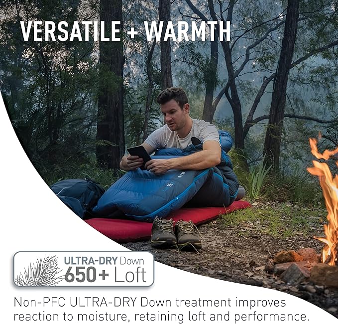 - 10-degree Fahrenheit (-12-degree Celsius) down sleeping bag for 4-season camping, backpacking, and trekking; mummy style features shaped hood and zipper draft tube