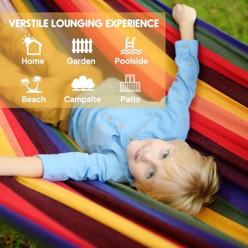 ANYOO Cotton Hammock Portable Camping Hammocks for Hanging Sturdy Garden Comfortable Fabric Hammock with Tree Straps Up to 660lbs with Travel Bag for Camping Outdoor/Indoor Patio Backyard