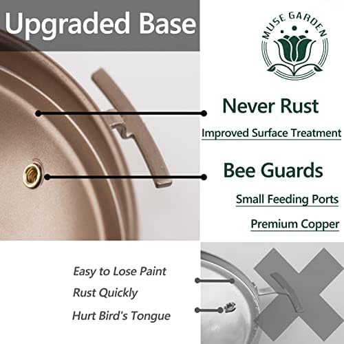 - **Rust-Proof and Hummingbird Safe Design** Featuring rust-proof metal fittings, this hummingbird feeder for outdoors is built to withstand outdoor conditions without corroding. Includes an ant guard and bee-proof base to keep pests away.