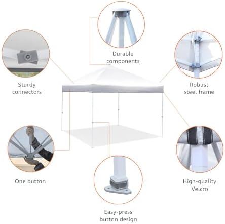 - EASY SETUP: This 10x10 pop up canopy features a one-push mechanism for a quick setup in under a minute, suitable for family gatherings, picnics, and more