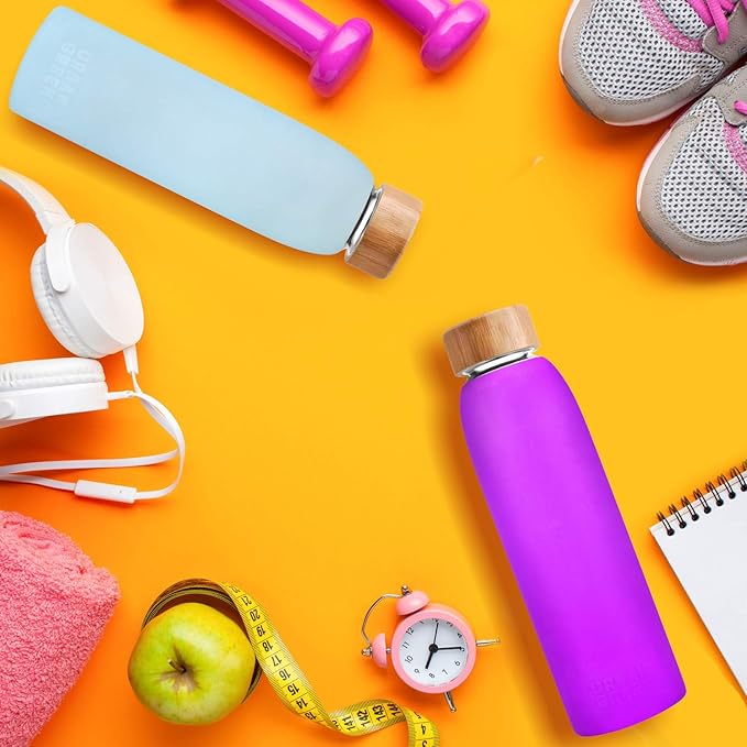 - ✅STYLISH AND PRACTICAL: Our bottles really stand out wherever you go, they come in different cool colors and look translucent with water reflection. The 18oz are a very carefully selected size of Glass Water bottle for daily use, they are perfect for any indoor and outdoor daily activities in the office, school, gym and hiking etc.