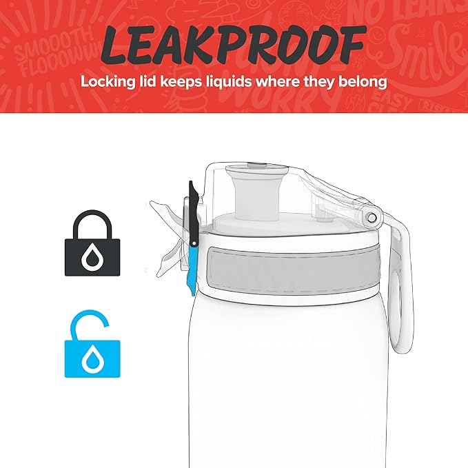 - ☝️😊 The Ion8 water bottle for kids is designed with a convenient one-finger, opening feature for the spout cover. Hygienically covering the mouth piece, it flips all the way back out of the way, so you can see ahead and stay safe. The triple-security lock keeps your child's drink safely sealed and clean, even when thrown into a bag. The integrated carry handle stays hidden until you're ready to go, making it easy to carry around.
