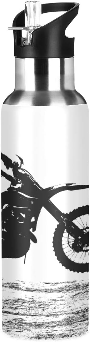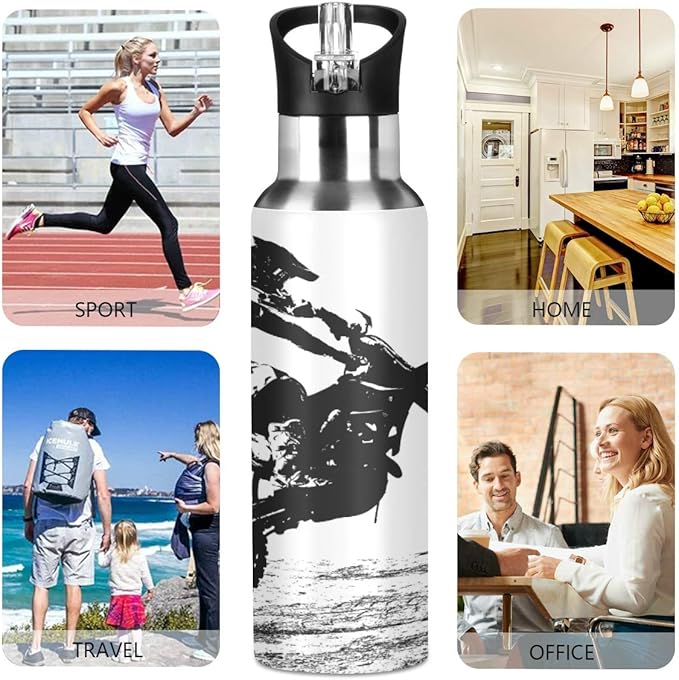 Motocross Rider Water Bottle with Straw Lid for Fitness Gym Camping Outdoor Sports, Wide Mouth Vacuum Insulated 18/8 Stainless Steel, 22 oz
