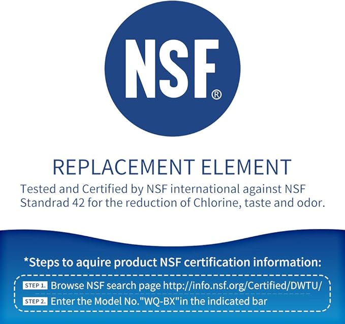 - ✔Safety Guarantee: These water filter replacements are tested and certified by NSF International against NSF/ANSI Standard 42 material safety . It can be found on the Water Quality Association&NSF websites.