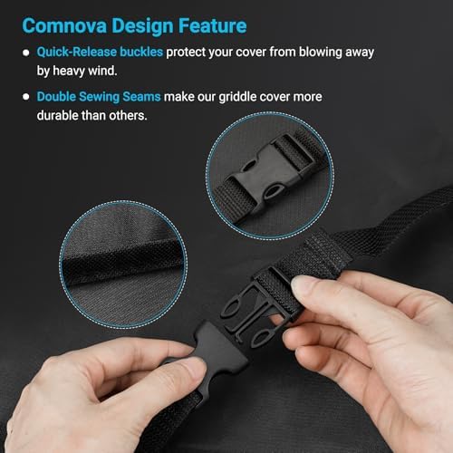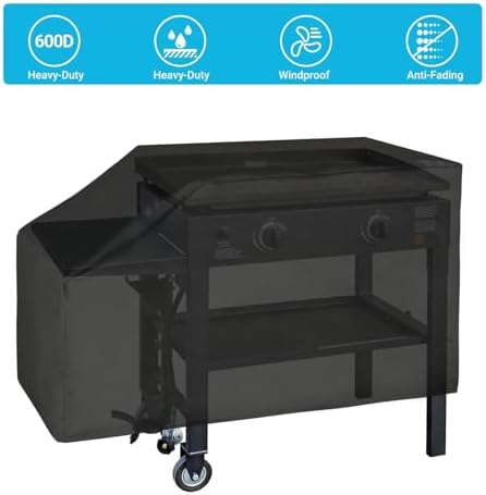 - 【Waterproof & Fade Resistant Design】Water-resistant PVC coating keeps your grill completely dry, and a full cover with seam sealing tape makes it 100% waterproof, constructed with UV-resistant fabric that can withstand sunlight and keeps the 28' griddle cover looks new.