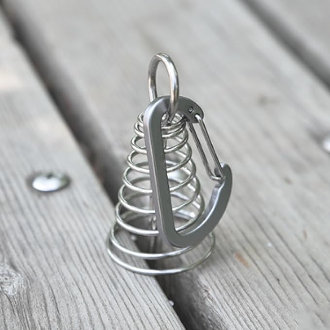TRIWONDER 6pcs Deck Plank Board Tent Stakes Aluminum Spring Anchor Fishbone Guyline Cord Adjuster Tent Pegs with Carabiners for Outdoor Camping Hiking